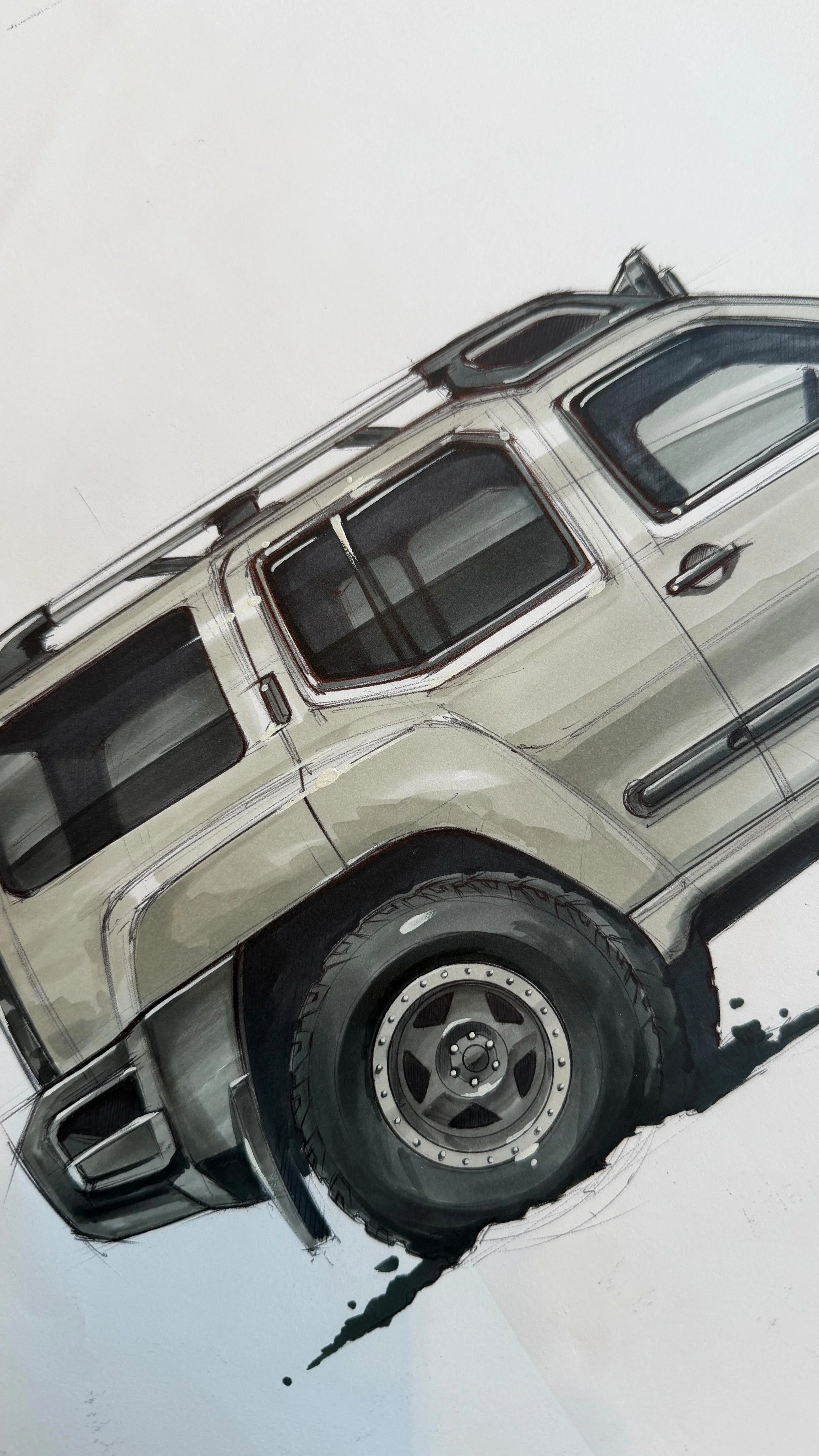 Original automotive artwork and design pieces created using traditional pen and marker techniques and digital media.